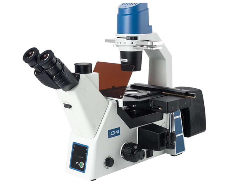 三目观察筒,45°倾斜,铰链组可360°旋转,固定式目镜筒,瞳距调节范围50-75mm,两档式分光比100:0或0:100; |