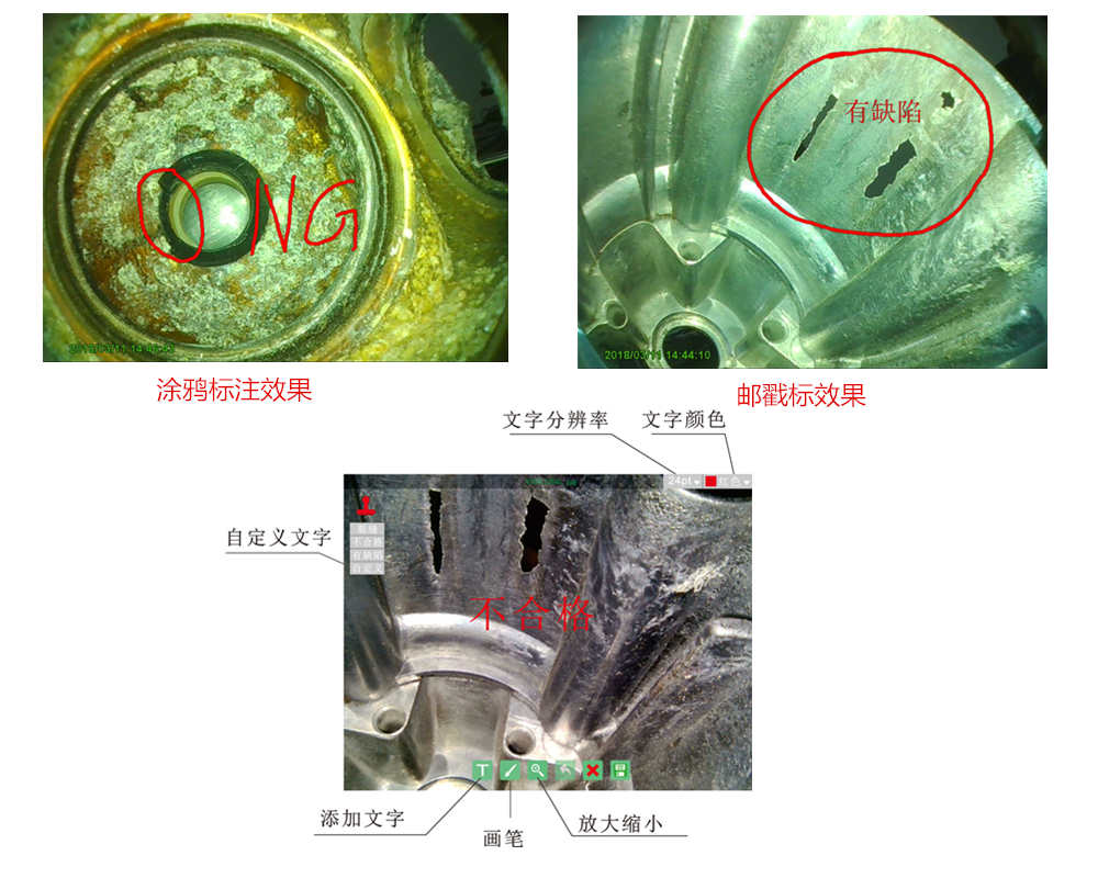 在检测过程中发现的异常问题和质量缺陷时;拍好照片,进入照片预览后;点击照片的编辑功能后可在屏幕上快速对问题进行简单标记描述。文字标注可分别进行:涂鸦标注、邮戳标注。