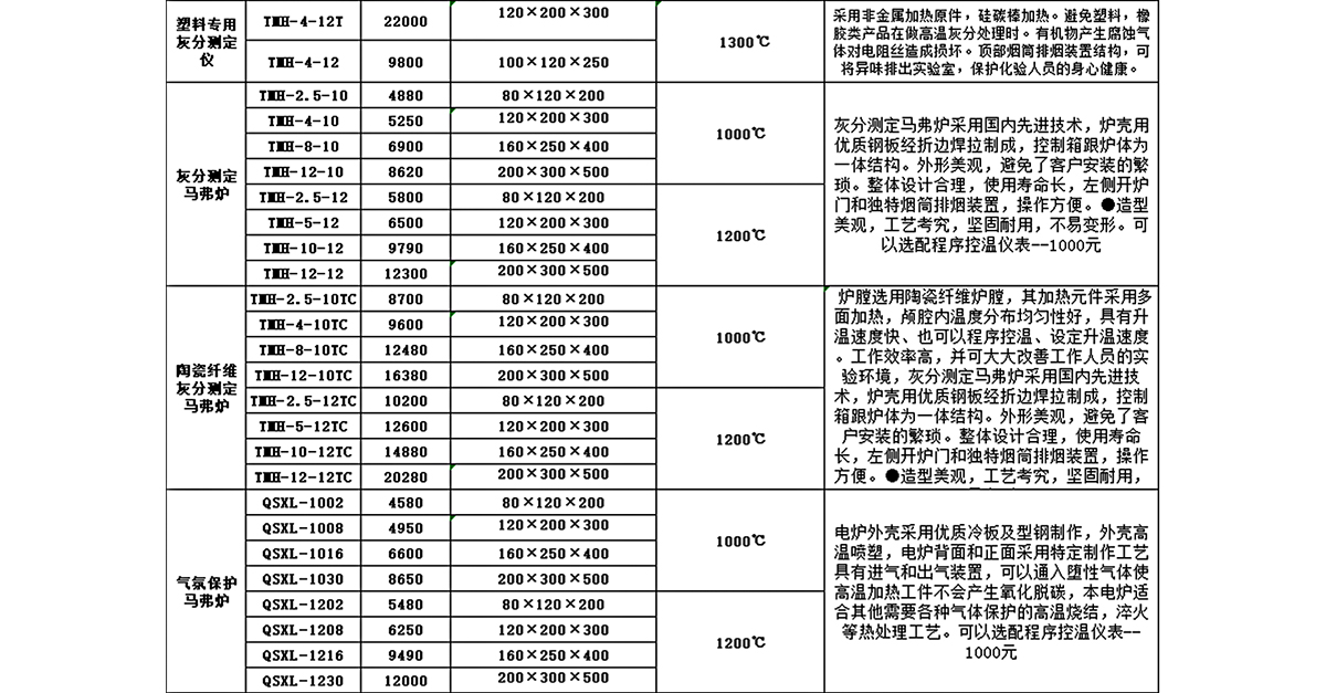 产品概述:高温马弗炉,程序控温马弗炉,陶瓷纤维马弗炉,一体式箱式电阻炉,塑料专用会分测定仪,灰分测定马弗炉,气氛保护炉,真空箱式炉等