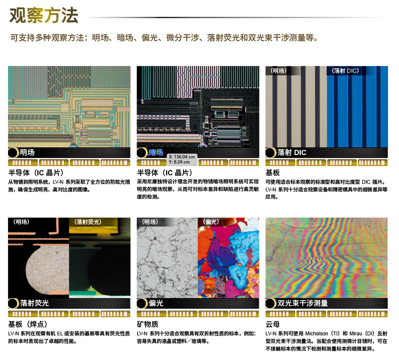 产品概述:ECLIPSE 显微镜机身采用模块化制造,可满足多领域的工业应用,其中包括半导体器件、封装、FPD、电子器件、材料和精密模具制造等。ECLIPSE LV 系列经过不断的发展完善并配备了新的光学系统和功能,可根据观察方法和目的选择支架装置和照明装置以满足多种观察需求。用户可选…