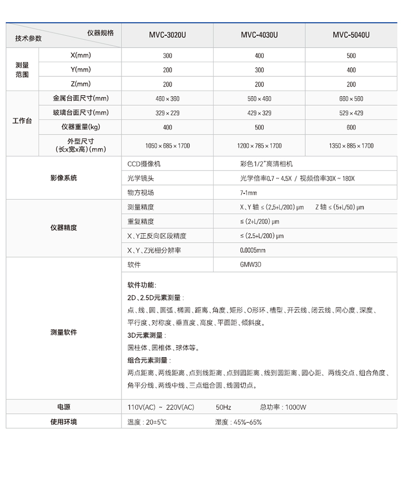 全自动精密型影像测量仪MVC-3020U/4030U/5040U
