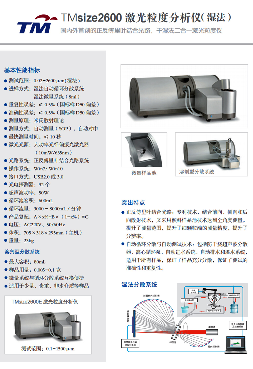 产品概述:正反傅里叶结合光路,干湿法二合一激光粒度仪
