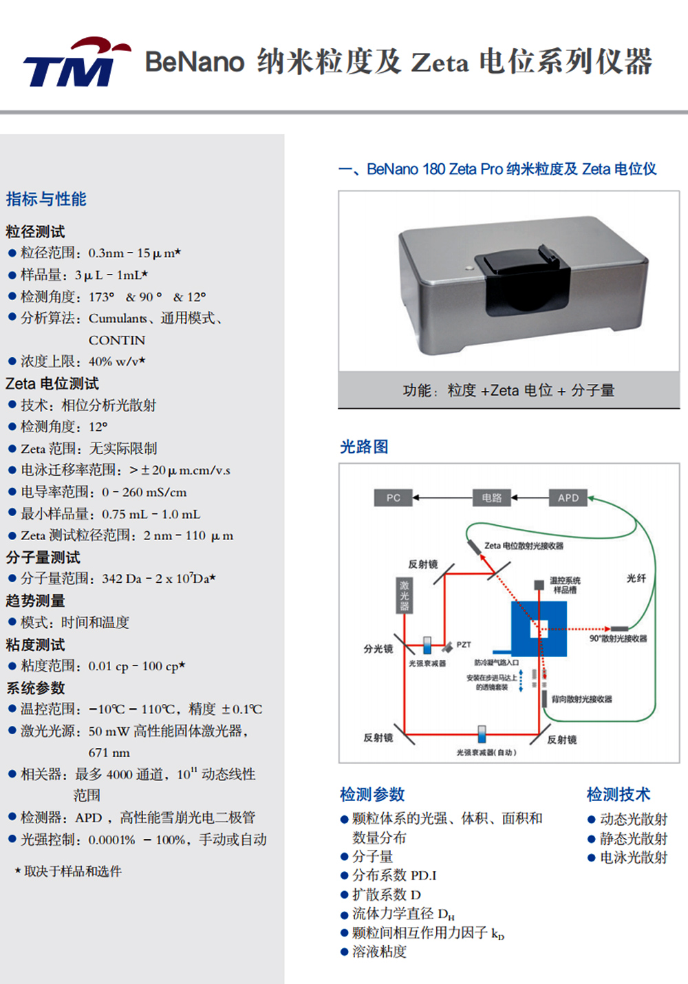 BeNano 纳米粒度及 Zeta 电位系列仪器