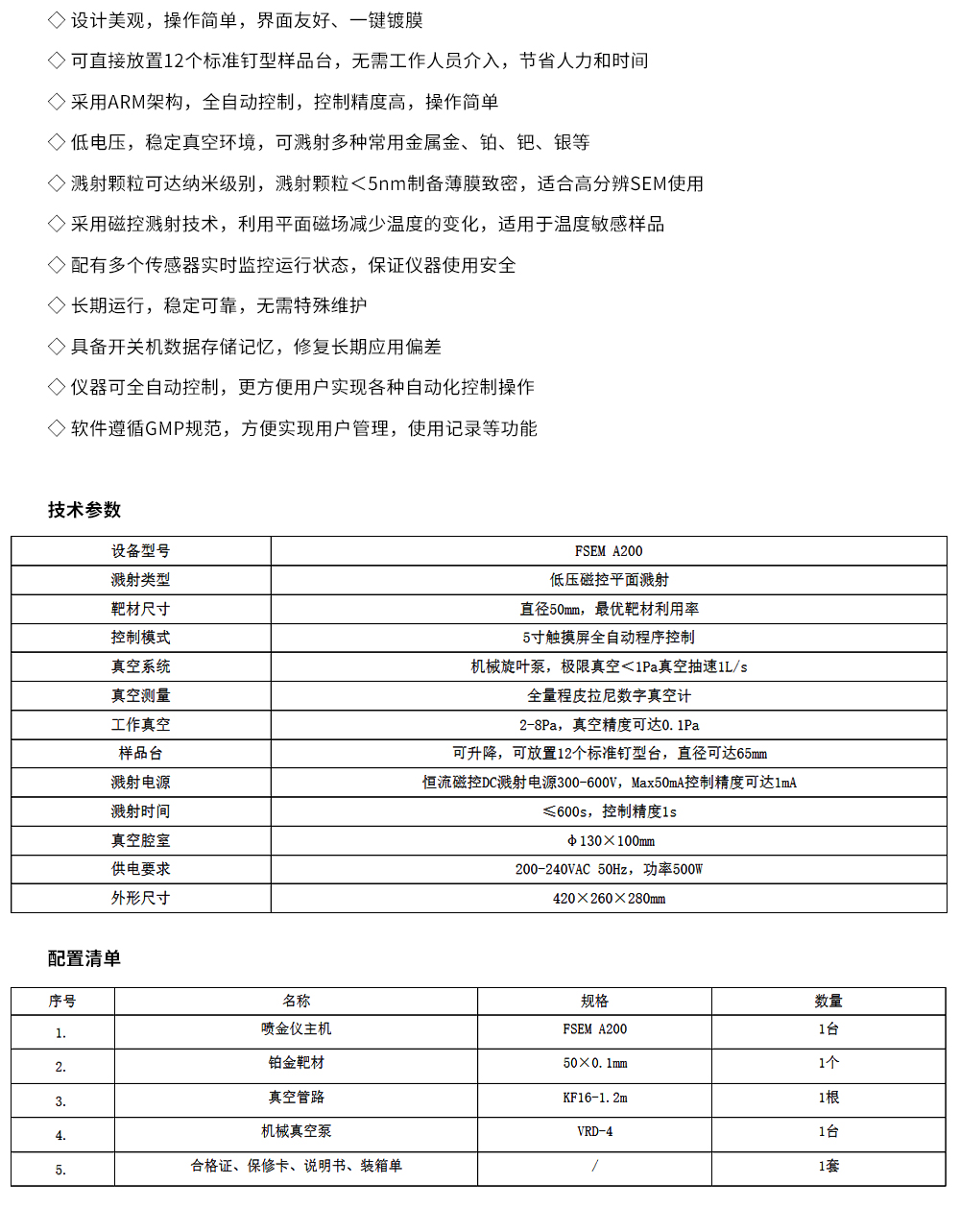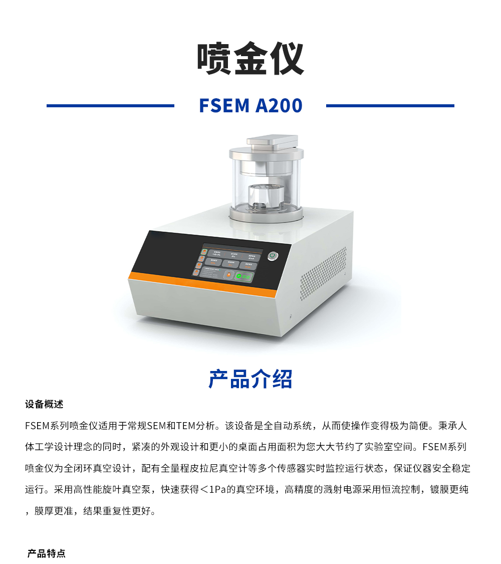 产品概述:FSEM系列喷金仪适用于常规SEM和TEM分析。该设备是全自动系统,从而使操作变得极为简便。秉承人体工学设计理念的同时,紧凑的外观设计和更小的桌面占用面积为您大大节约了实验室空间。