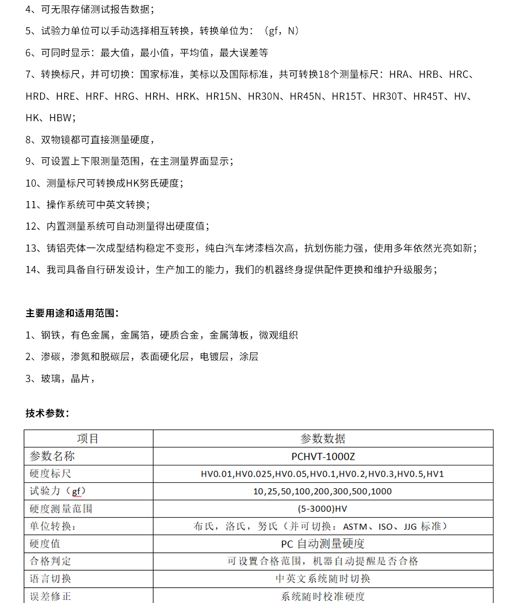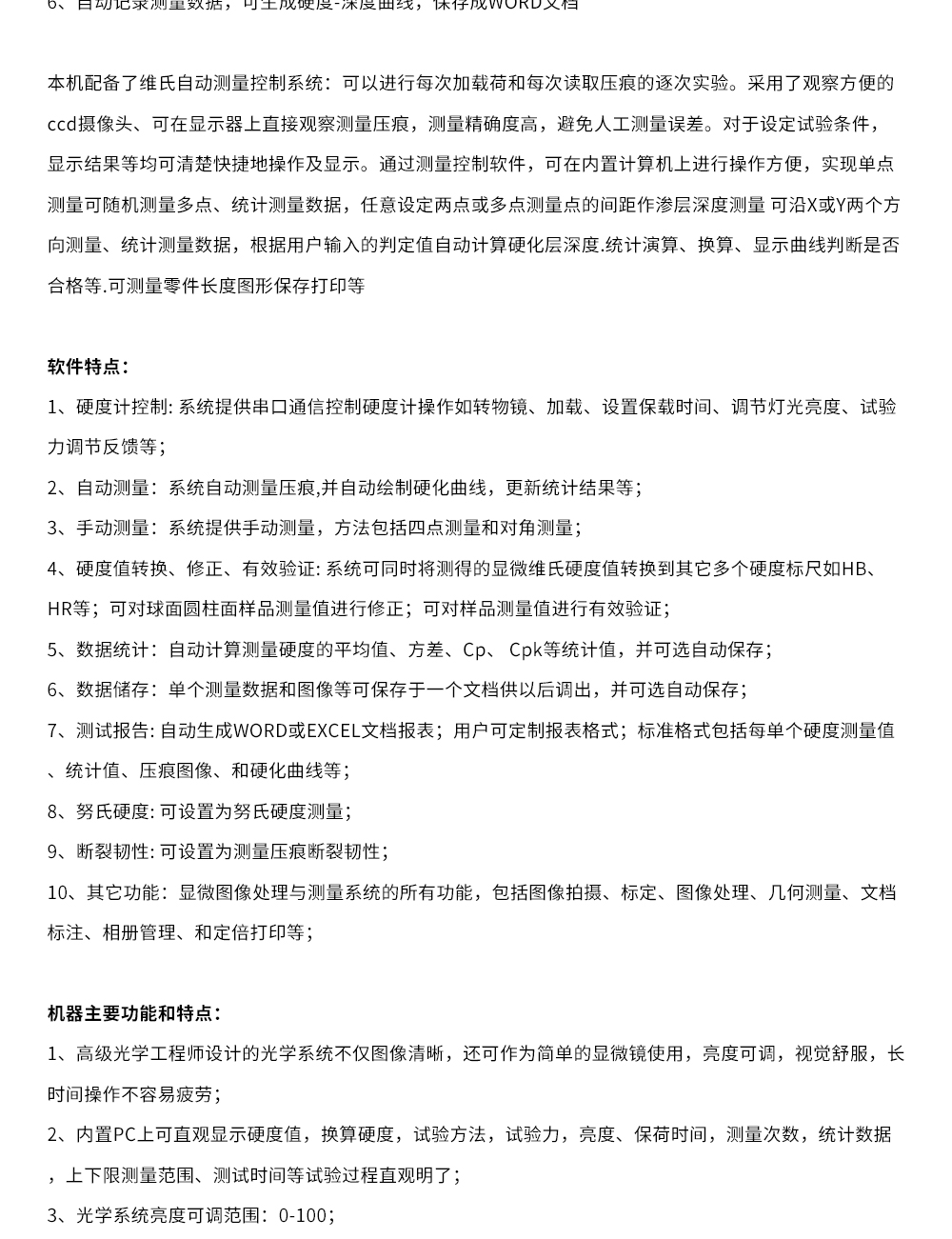 产品概述:集成智能化视觉硬度计,只需操作一台触摸平板电脑,轻松搞定测量!而且测试所需的全部参数都可直接在电脑上选择,修改,分析。