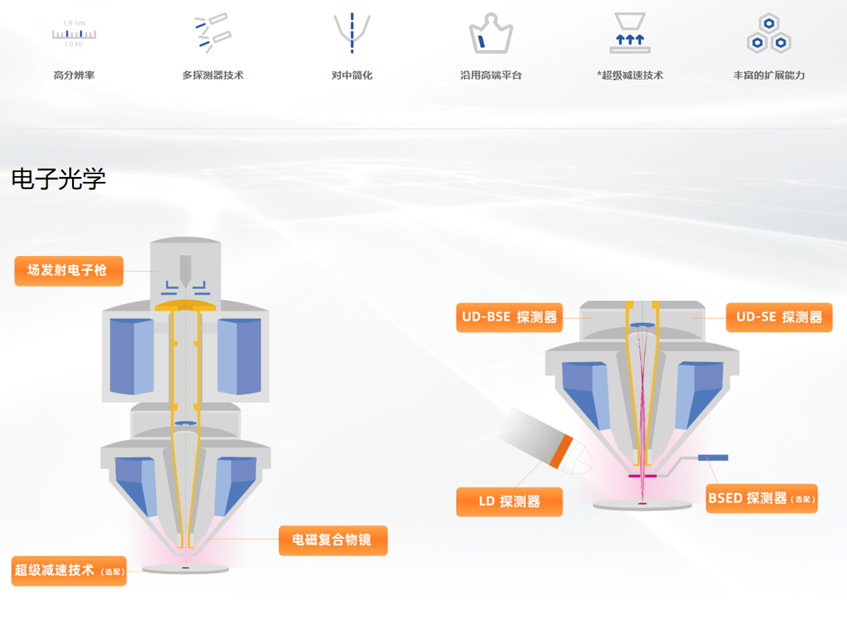 产品概述:SEM4000X是一款稳定通用,灵活高效的场发射扫描电镜。分辨率可达1.9nm @1.0kV,轻松应对各种类型样品的高分辨拍样挑战,可升级超级减速模式,进一步提升低压分辨率。